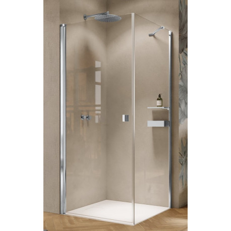 Huppe > Sprchové boxy > Čtvercové boxy/obdélníkové boxy > Solva > Křídlové dveře Huppe Solva částečně v rámu 4-úhel 80x200 cm, připevnění levé, montáž na vaničku - sklo čiré Anti-Plaque, stříbrný lesklý profil