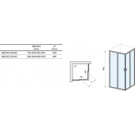 Ravak > Sprchové boxy > Čtvercové boxy/obdélníkové boxy > Blix II > Sprchový kout Ravak Blix II NBLRV2, czteroczęściowa rohová 90x90x195 cm, sklo čiré z warstwą AntiCalc, profil lesklý chrom