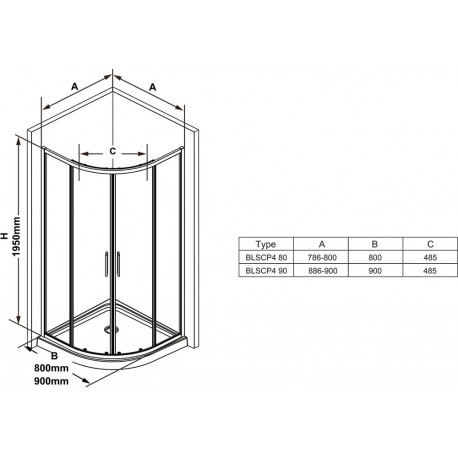 Dotaz k produktu Sprchový kout Ravak Blix Slim BLSCP4, čtvrtkruhový, 90x90x195 cm, sklo čiré z warstwą AntiCalc, profil lesklý chrom:
