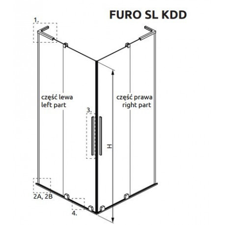 Kompletní sprchový kout se skládá z 2 części (części levé a pravé).
