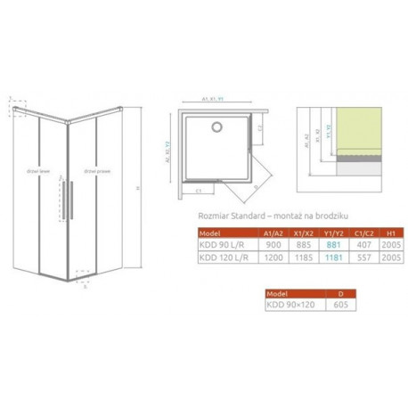 Dveře koutu Radaway Idea 8 QL KDD 120 cm, část levá - sklo čiré, profil chrom Série: Idea