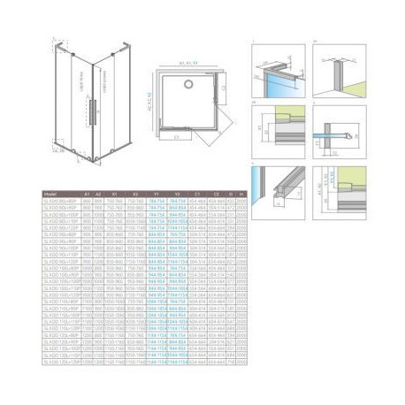 Kompletní sprchový kout se skládá z 2 części (części levé a pravé).