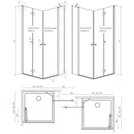 Radaway > Sprchové boxy > Čtvercové boxy/obdélníkové boxy > Nes > Sprchový kout Radaway Nes Brushed Copper H-KDD II 90, část levá, dveře 900x2000mm - sklo čiré, profil měď szczotkowany