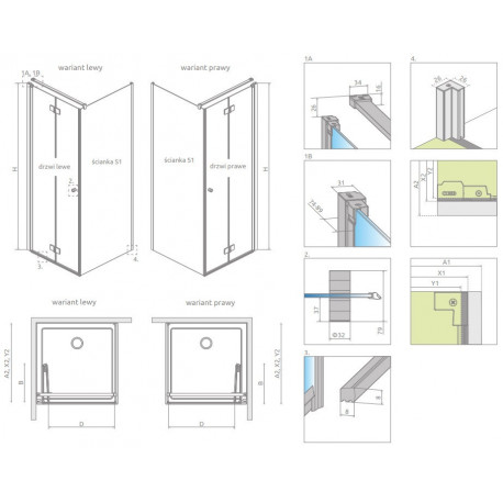 Radaway > Sprchové boxy > Čtvercové boxy/obdélníkové boxy > Ścianki boczne > Pevná boční stěna S1 90 Radaway Nes Black KDJ B, 900x2000mm