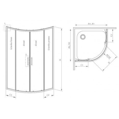 Radaway > Sprchové boxy > Čtvrtkruhové sprchové boxy > Premium Pro > Čtvrtkruhový sprchový kout Radaway Premium Pro PDD asymetrické 80L x 100P cm - sklo čiré, profil chrom