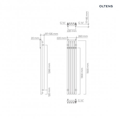 Oltens > Grzejniki > Dekorativní > Stang > Radiátor dekorační Oltens Stang 150x26 cm - bílý
