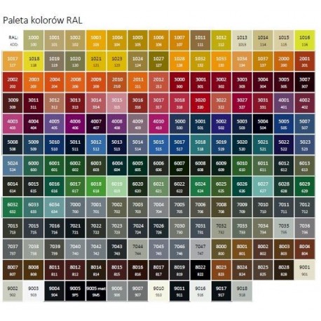 Barva: RAL i speciální barvy (z wyłączeniem chromu i Barvaów Premium).