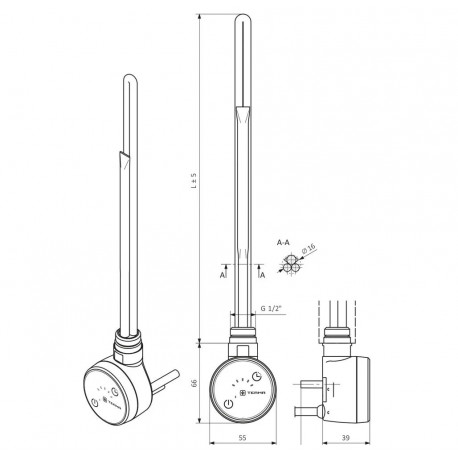 Terma > Zawory, Głowice > Grzałki > Topné tyče > Topná spirála elektrický Terma MOA WiFi s topným tělesem, výkon 600 W - bílá