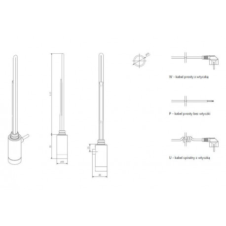 Terma > Zawory, Głowice > Grzałki > Topné tyče > Topná spirála Terma One na profilu okrągłym R36, výkon 300 W - chrom