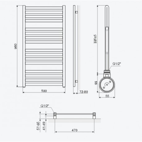 Excellent > Grzejniki > Koupelnové žebříkové > Horos > Koupelnový radiátor elektrický Excellent Horos 96 960x500 z elektrickým topným tělesem 400W - šedá metalik