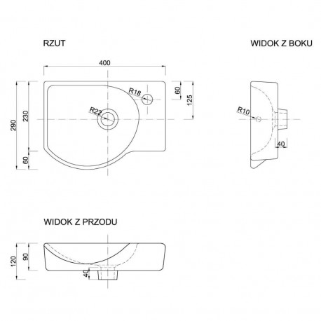 Defra > Sanitární keramika > Nábytková umyvadla > Meblowe > Umyvadlo nábytkové Defra Tummy 40, obdélníková 40x29 cm, s otvorem na baterie, z přepadem - bílá