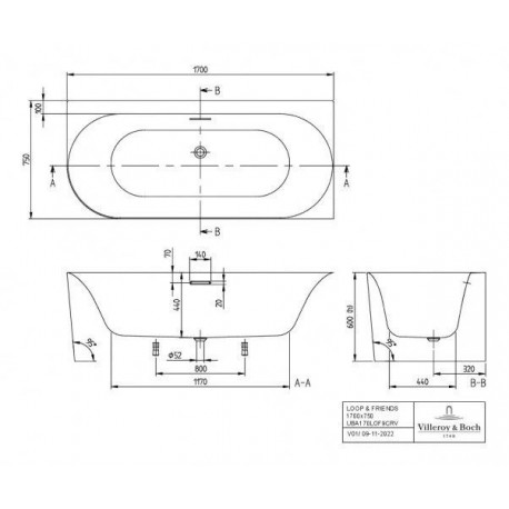 Villeroy & Boch > Vany > Obdélníkové vany > Obdélníkové > Vana přístěnná Villeroy&Boch Loop&Friends 170x75 cm, oválný, pravá - bílá