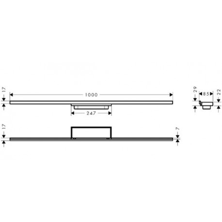 Vnější komponent odpływu liniowego Hansgrohe RainDrain Minimalistic 1000, montáž přistěnný