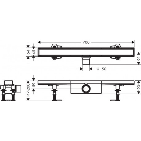 Kompletní lineární odtok Hansgrohe RainDrain Compact 700, rošt do wyłożenia płytkami, standardní