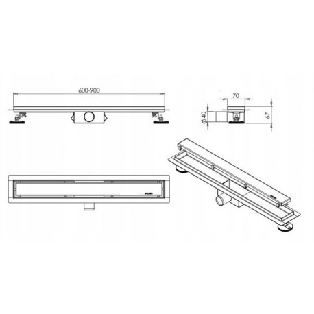 Lineární odtok podlahový Balneo Duplex Black 80 cm, dwustronny, nízká 52 mm - černá