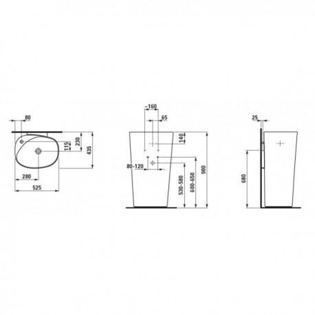 Laufen > Sanitární keramika > Ostatní umyvadla > Palomba > Monolityczna umyvadlo volně stojící Laufen Palomba přístěnná z zintegrowanym postumentem z 1 otworem 525 x 435 x 900 mm - bílá