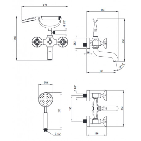 Deante > Armatura / baterie > Sprchové nástěnné baterie > Temisto > Vaňová baterie se sprchovým systémem, Deante Temisto - nero (černá matnáný)