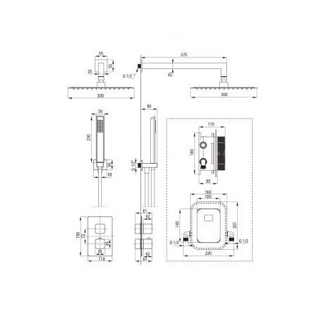 Deante > Armatura / baterie > Sprchové podomítkové baterie > Box > Sprchový set podomítkový Deante Box Nero termostatický s hlavovou sprchou 30 cm - nero (černá matnáný)