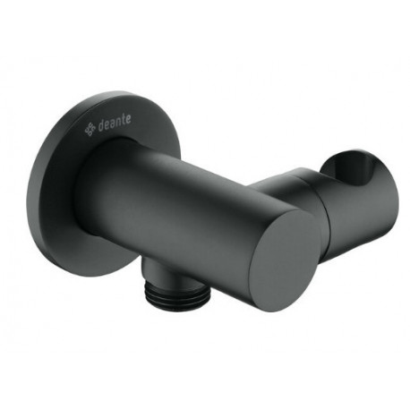 Deante > Armatura / baterie > Sprchové prvky /hlavice, hadice, rukojeti/ > Cascada > Přípojka úhlová kulaté s rukojetí na sluchátko Deante Cascada - nero (černá matnáný)