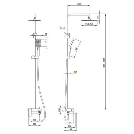 Horní sprcha s baterií wannową- otočné výtokové rameno, Deante Alpinia - nero (černá matnáný)