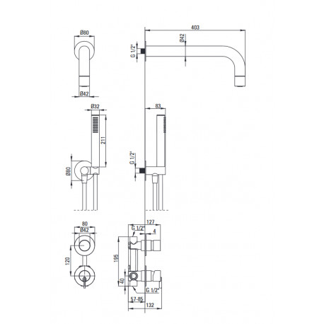 Deante > Armatura / baterie > Sprchové sady > Silia > Sprchový set podomítkový z główką sprchovým, Deante Silia - nero (černá matnáný)