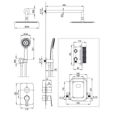 Deante > Armatura / baterie > Sprchové sady > Arnika > Sprchový set podomítkový z BOXem mieszaczowym, Deante Arnika - nero (černá matnáný)