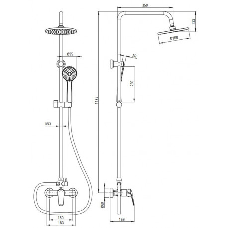 Deante > Armatura / baterie > Sprchové sady > Boro > Sprchový set Deante Boro na stěnu s hlavovou sprchou 20 cm - černá
