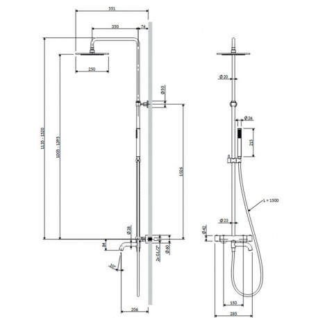 Omnires > Armatura / baterie > Sprchové sady > Y > System vannovásprchový, na stěnu, termostatický, Omnires Y - černá polomatný