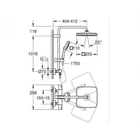 Grohe > Armatura / baterie > Sprchové sady > Sprchové systémy > Sprchový systém Grohe Vitalio Comfort 250 s termostatem k montáži na stěnu, s hlavovou sprchou kwadratową 25 cm - chrom