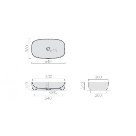 Galassia > Sanitární keramika > Umyvadla na desku > Dream > Umyvadlo na postavení na desku Galassia Dream bílá, 64 x 38 x 14 cm, bez přepadu, bez otvoru pro baterii - piaskowa