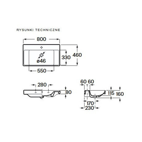 Roca > Sanitární keramika > Umyvadla na desku > Ona > Umyvadlo nábytkové obdélníková Roca Ona Fineceramic, 80x46cm, s otvorem na baterie, z přepadem - bílá