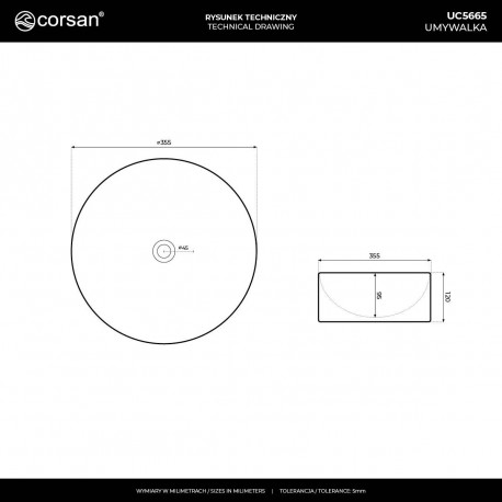 Corsan > Sanitární keramika > Umyvadla na desku > Umywalki nablatowe > Umyvadlo na postavení na desku Corsan Lugo kulatá 35,5x12 cm s uzávěrem klik-klak bílým