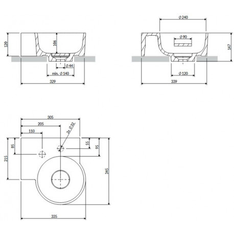 Omnires > Sanitární keramika > Umyvadla na desku > Ovo M+ > Umyvadlo na postavení na desku/závěsná Omnires Ovo M+, levá, 33 x 34 cm, bez přepadu - ash grey matnáný