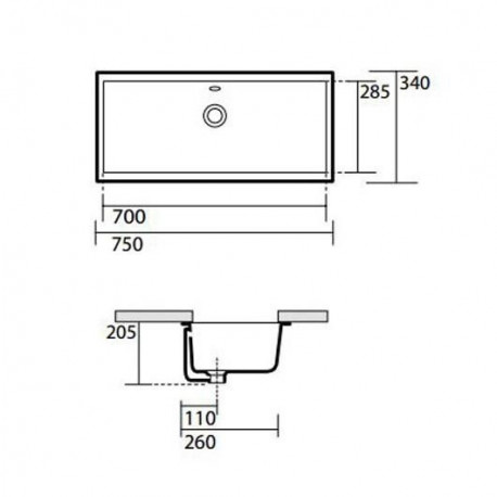 Kerasan > Sanitární keramika > Umyvadla poddesková > Umyvadla > Kerasan Slim Umyvadlo pod desku obdélníková 75x34 cm bílý