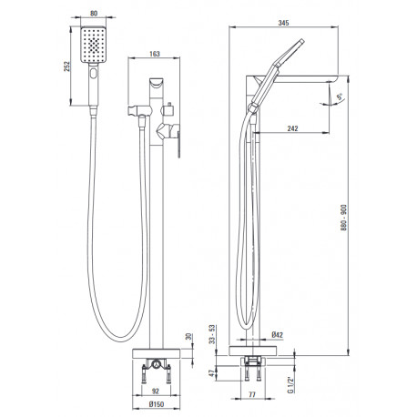 Deante > Armatura / baterie > Vanové volně stojící baterie > Alpinia > Vaňová baterie páková volně stojící se sprchovým systémem, Deante Alpina - nero (černá matnáný)