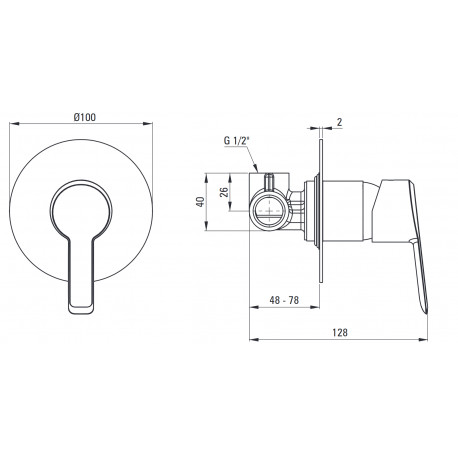 Deante > Armatura / baterie > Umyvadlové nástěnné baterie > Arnika > Sprchová baterie bez přepínače pro sprchové kouty podomítková, Deante Arnika - nero (černá matnáný)