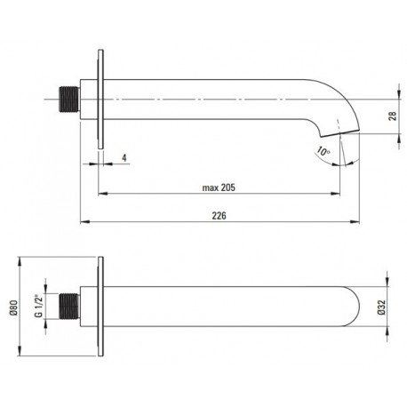Deante > Armatura / baterie > Stěnové výtoky > Silia > Výtokové rameno vanová Deante Silia stěnová, délka 22,6 cm - broušená ocel