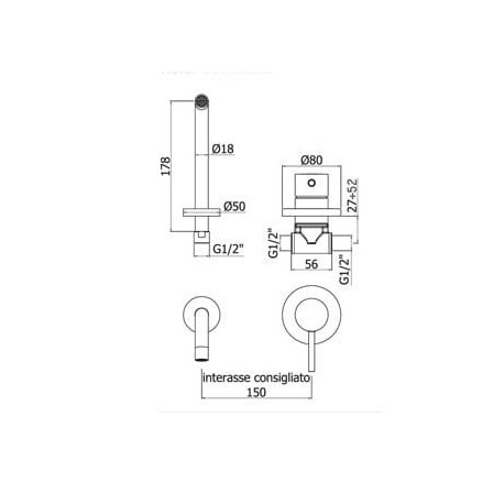 Paffoni > Armatura / baterie > Umyvadlové nástěnné baterie > Light > Umyvadlová baterie podomítková Paffoni Light s výtokovým ramenem 18 cm - bílý matnáný