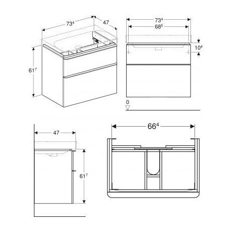Geberit > Koupelnový nábytek > Umyvadlové skříňky > Smyle Square > Skříňka pod umyvadlo Geberit Smyle Square 73,4 cm, se dvěma zásuvkami