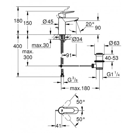 Grohe > Armatura / baterie > Umyvadlové stojánkové baterie > Bauedge > Umyvadlová baterie Grohe BauEdge, stojící, výška 150 mm, velikost S, s odtokovou soupravou - chrom