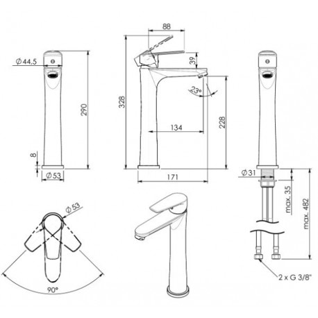 Gedy > Armatura / baterie > Umyvadlové stojánkové baterie > Como > Umyvadlová baterie vysoká Gedy Como stojící, páková - chrom
