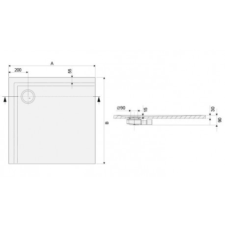 Sanplast > Sprchové vaničky > Vaničky z konglomerátů > Čtvercové / obdélníkové > Čtvercová sprchová vanička Sanplast B-M/SPACE 90x90x1,5 biew, odlew minerální - bílý