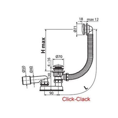 Ravak > Odpadové systémy > Vanové přepady/odtoky > Příslušenství > Sifon vanová Ravak vypouštěcí a přepadová, z mechanizmem click-clack - chrom