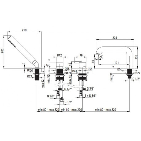 Deante > Armatura / baterie > Vanové víceotvorové baterie > Silia > Vaňová baterie Deante Silia 4otvorová se sprchovým systémem - bronz kartáčovaný