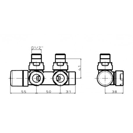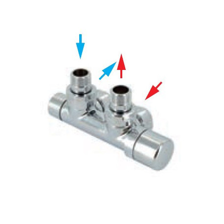 Zehnder > Zawory, Głowice > Ventily > Twin > Sada ventilů Zehnder typ P (pravé), pro připojení środkowego 50 mm, ovládací, s možností připojení głowicy termostatycznej (M30x1,5 mm) - chrom