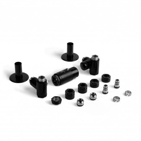Terma > Zawory, Głowice > Ventily > Ventily > Souprava Terma tříosový termostatický Integra Al In One, s možností montażu grzałki, levé - černá matnáný
