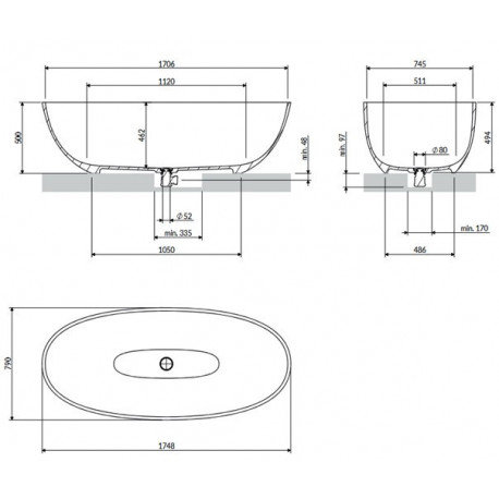 Omnires > Vany > Volně stojící vany > Wolnostojące > Vana volně stojící Omnires Shell M+ 175x78cm - barva black lava matnáný
