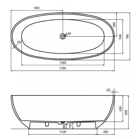 Besco > Vany > Volně stojící vany > Assos > Vana volně stojící Besco Mexa 170x78 cm oválný Carbon Grey, maskownica černá matt