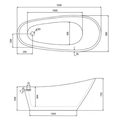 Besco > Vany > Volně stojící vany > Assos > Vana volně stojící Besco Melody 150x80 cm oválný bílá, maskownica syfonu z přepadem bílá