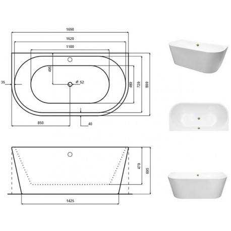 Besco > Vany > Volně stojící vany > Assos > Vana přístěnná Besco Vica New, 170x80 cm, akrylová, bílá + sifon bílý z napełnieniem przez přepad